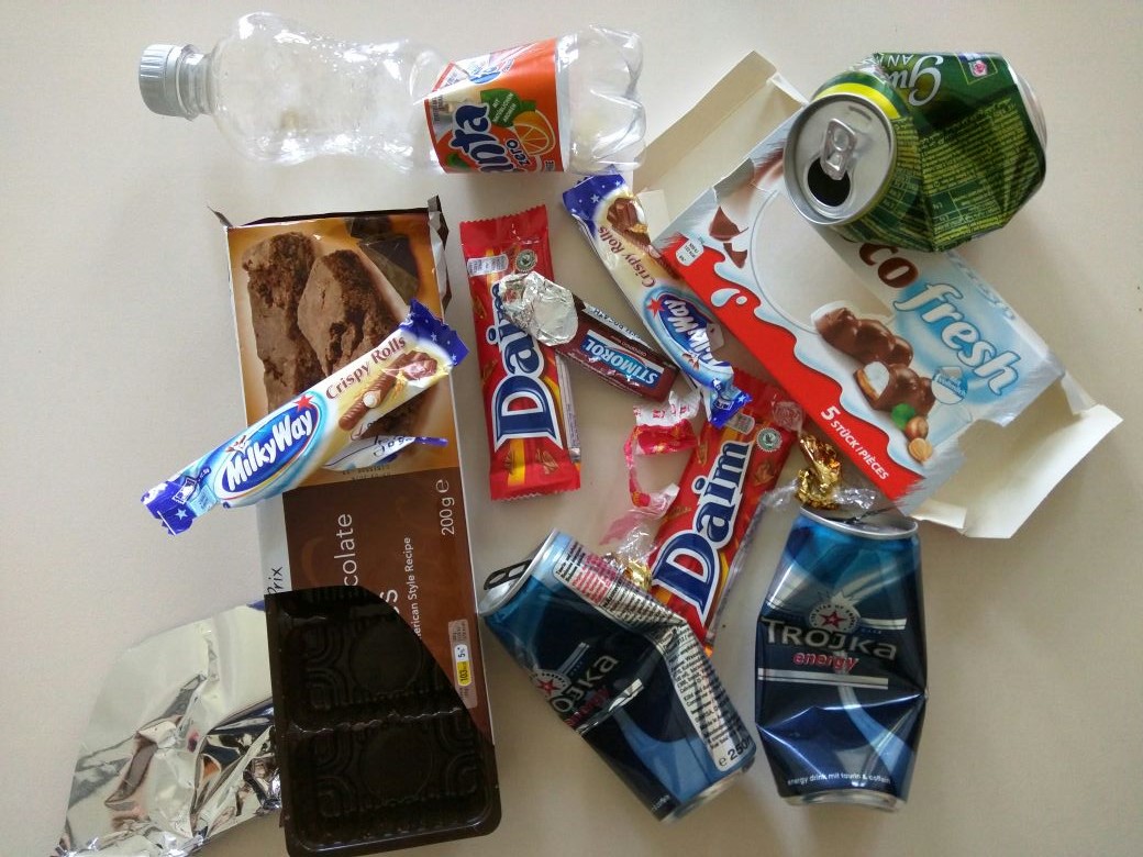 Werden Sie am Arbeitsplatz auch ständig von kleinen Sünden verführt? Schoggistängel, Kuchen von Mitarbeitern und Süssgetränke nur, um dem Nachmittagstief so gut wie möglich zu entkommen? Wir – Madlaina und Janine – unsererseits zuckerabhängige Praktikantinnen, verbringen unsere Arbeitstage im Büro mit allerlei Ungesundem. Hier unsere Bilanz der letzten beiden Tage: